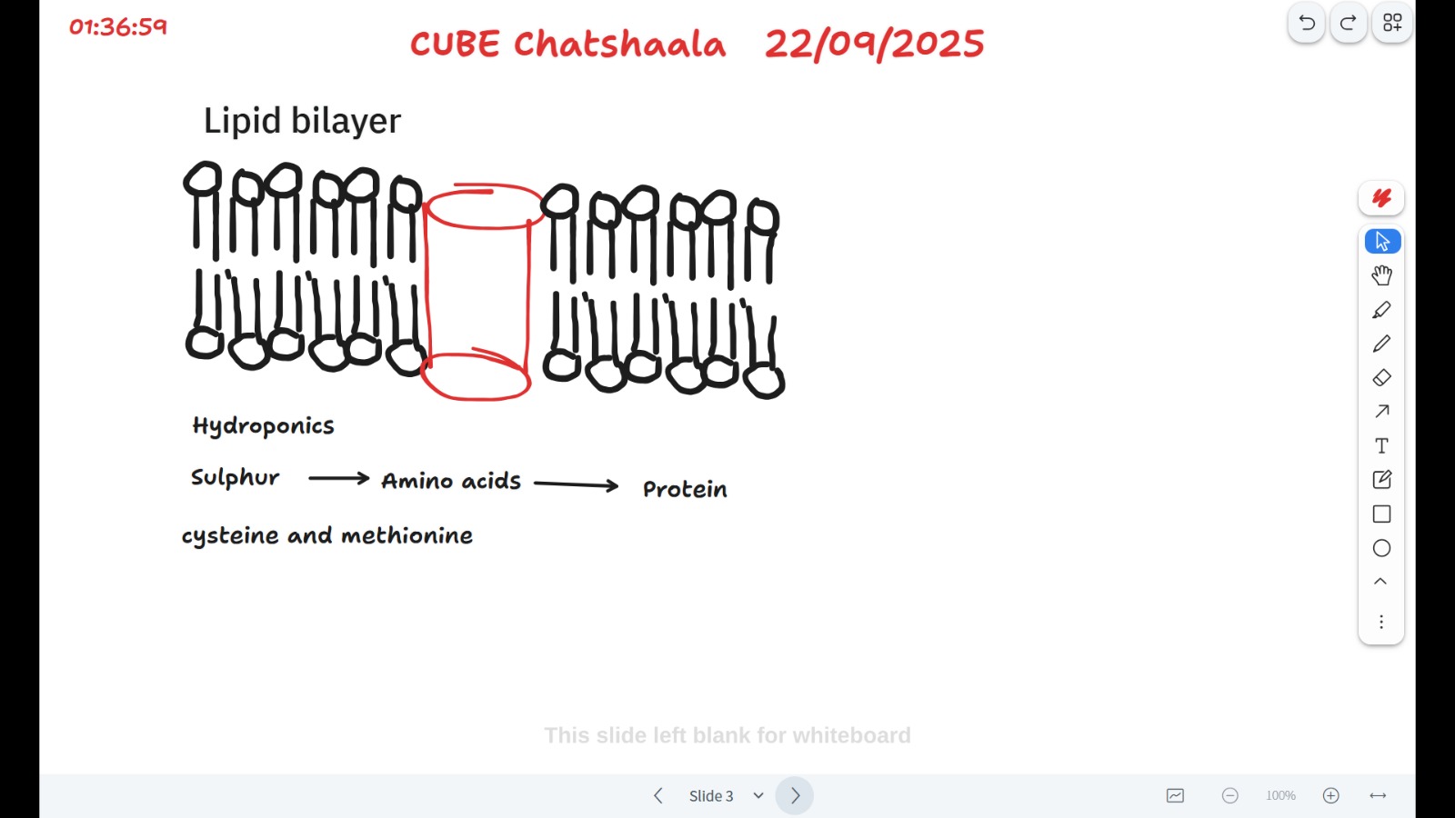 The latter part of the session delved into the crucial concept of proteins. A fundamental connection was established, illustrating how the element sulphur is a critical component for forming specific amino acids, such as cysteine and methionine, which in turn are the building blocks of proteins. This chemical pathway underscores the biological significance of proteins, a theme further emphasized by a visual representation of a lipid bilayer, which forms the membrane of all cells. This juxtaposition of large-scale farming systems with the microscopic architecture of life provided a comprehensive overview of how these concepts are linked.