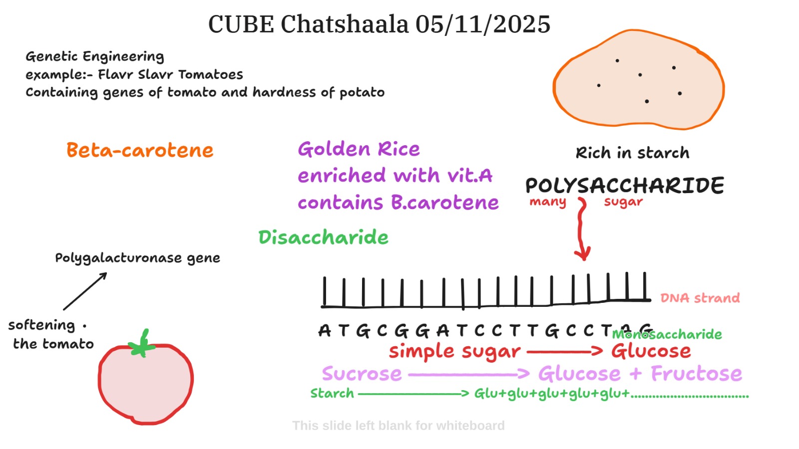 The Confusing Potato-Tomato: One of the most significant points to clarify came from the âGenetic Engineeringâ slide. It listed âFlavr Savr Tomatoesâ as âcontaining genes of tomato and hardness of potato.â This appears to be a major misconception. The Flavr Savr modification involved suppressing an existing tomato gene (polygalacturonase) to slow ripening. The idea of adding a âhardness of potatoâ gene seems to be an incorrect assumption that conflates two different organisms and traits. We should definitely address this.
