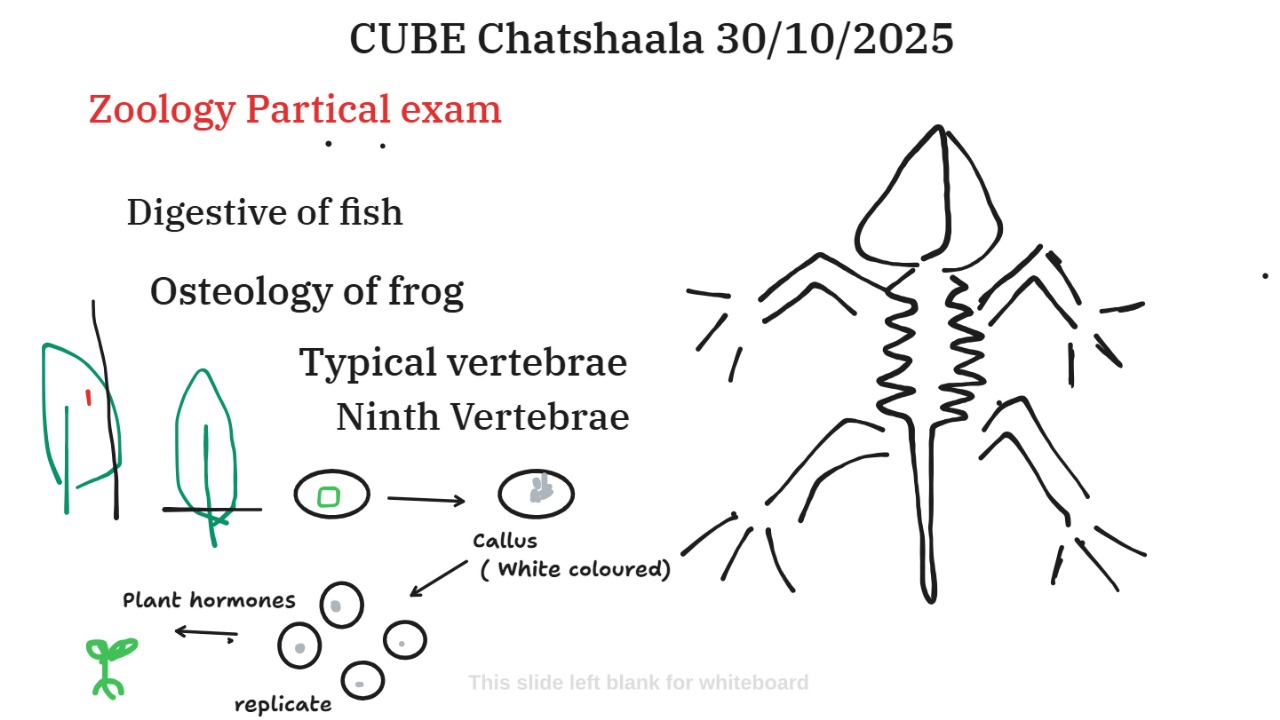 Today’s ChatShaala revolved around Zoology Practical topics—particularly Osteology of Frog, Typical Vertebra, and Ninth Vertebra, integrated with insights into plant tissue culture and hormones. The session beautifully blended animal and plant systems, showing how comparative biology deepens understanding across life forms.