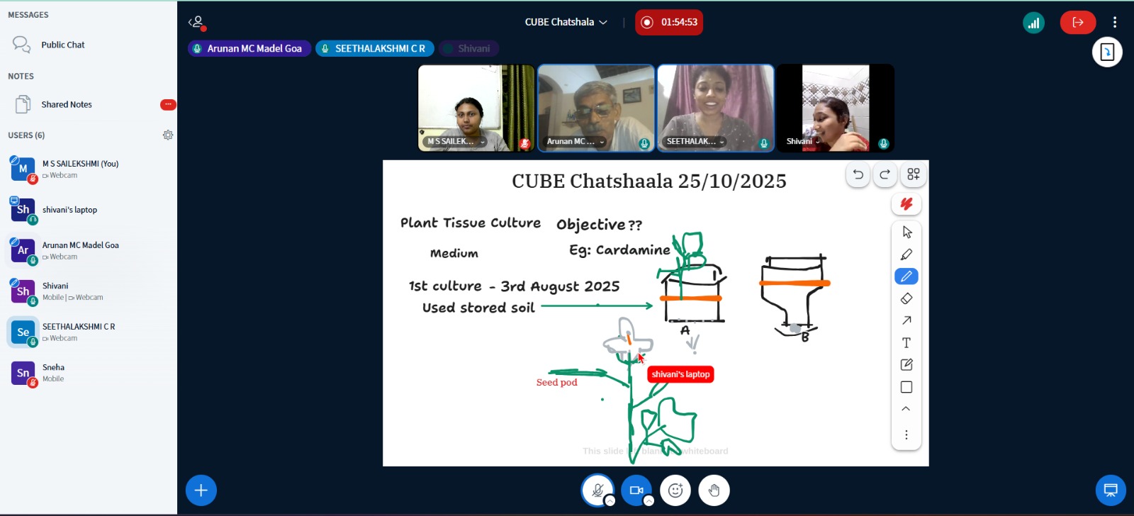 Today’s CUBE ChatShaala revolved around understanding the objectives, medium, and process of Plant Tissue Culture (PTC) using Cardamine as a model organism—a plant often considered a local alternative to Arabidopsis thaliana.