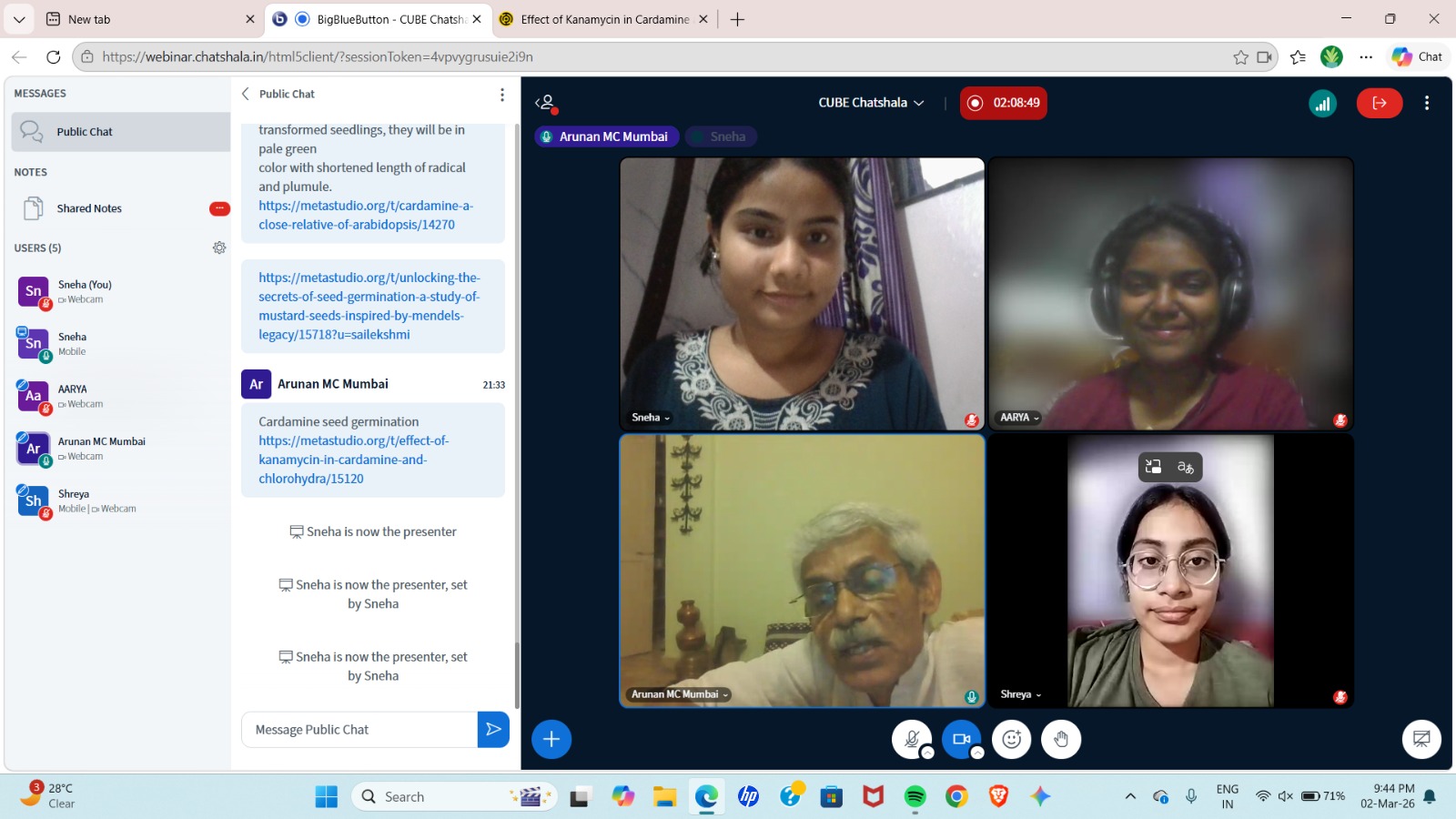 The CUBE ChatShaala session on 2 March 2026 focused on two interconnected themes: mango flowering in India and Cardamine-based genetic engineering as a citizen science project.