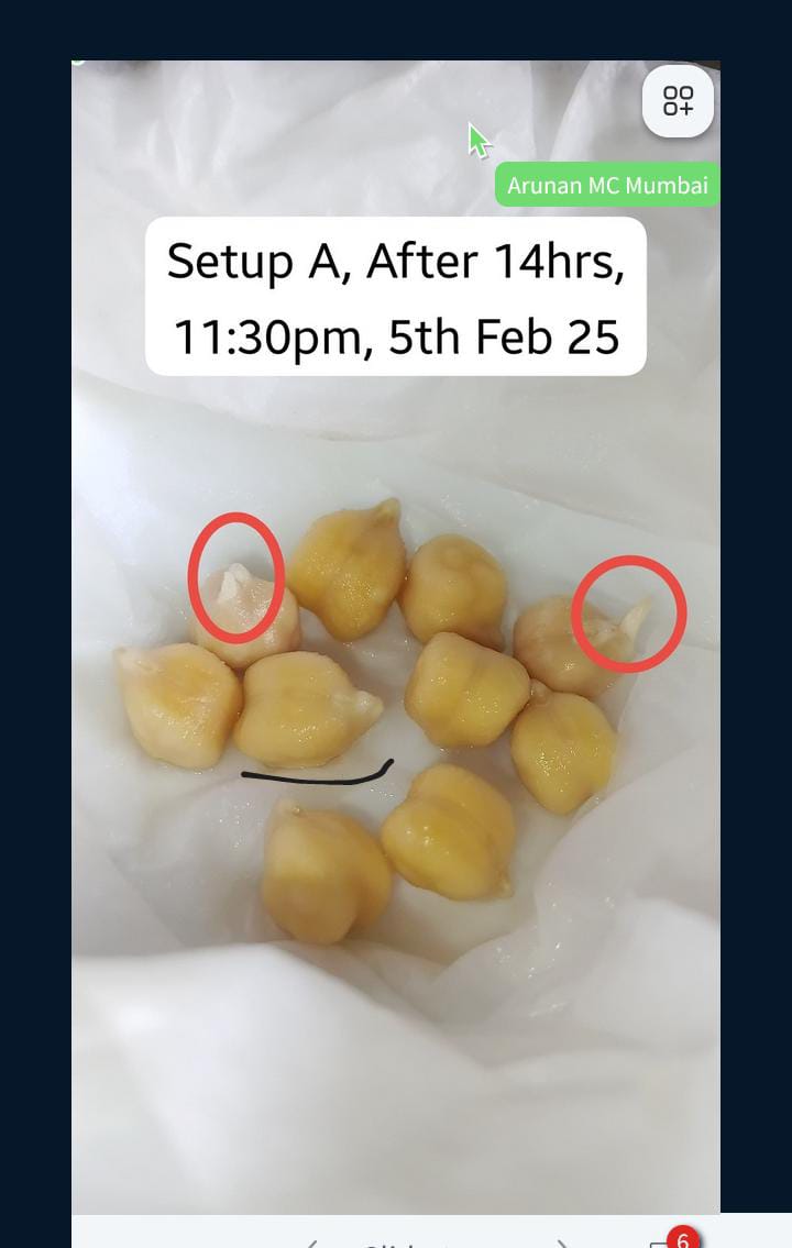 The CUBE ChatShaala session on 5 February 2026 was a rich exchange of observations and reflections centered on seed germination, microbial culture, and aquatic organism experiments. The discussion began with Abhijeet’s study on the germination of chickpea soaking trials: he documented that swelling occurred after 10 hours of immersion and noted early sprouting within 14–22 hours. Two comparative setups (A and B) were carefully examined, revealing subtle differences in germination progress and prompting questions about environmental influences, such as moisture distribution and seed quality.