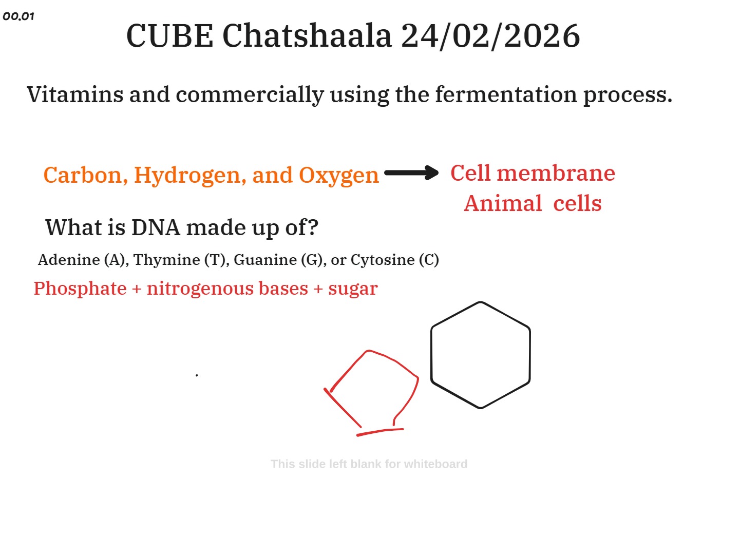 The CUBE ChatShaala session on 24 February 2026 focused on the biology and industrial significance of vitamins, DNA composition, and the role of fermentation in commercial production, in preparation for Sneha’s presentation tomorrow. The discussion began with the fundamentals: vitamins are essential organic compounds that must be consumed in small quantities for metabolic processes, growth, and disease prevention. Their importance in vision, immunity, and energy production was emphasized, alongside industrial applications in food fortification, pharmaceuticals, nutraceuticals, animal feed, and cosmetics.