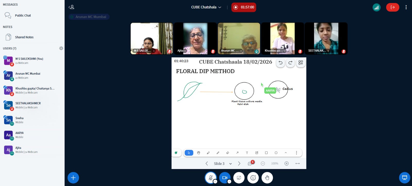 Today’s CUBE ChatShaala (18/02/2026) focused on plant genetic engineering, with Bt cotton serving as the central example. The discussion began with the role of plasmids in bacteria, emphasizing their nature as extrachromosomal DNA distinct from chromosomal DNA. Participants explored how plasmids can be engineered to carry useful genes, such as the Bt toxin gene, which provides cotton plants resistance against bollworms.