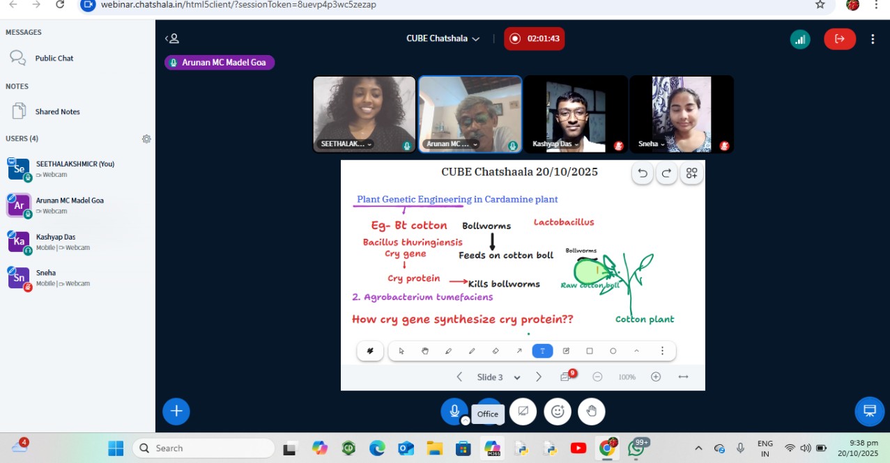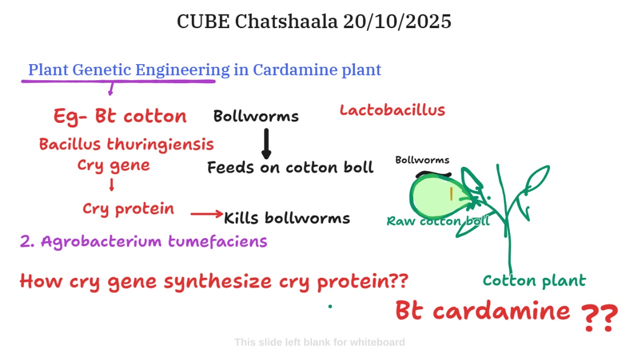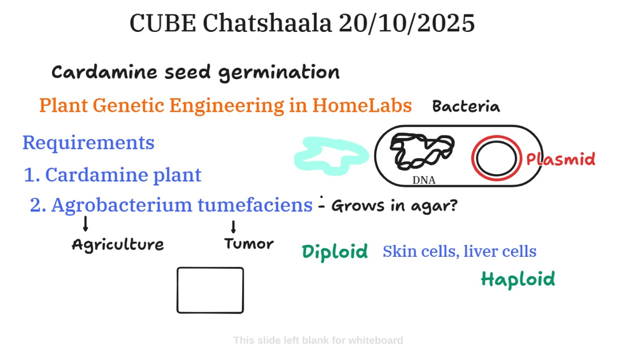 Today’s ChatShaala centered around exploring how genetic engineering concepts can be brought into simple HomeLab experiments using the Cardamine plant as a model organism. The discussion moved from basic seed germination to advanced ideas like gene transfer using Agrobacterium tumefaciens and its plasmid system.