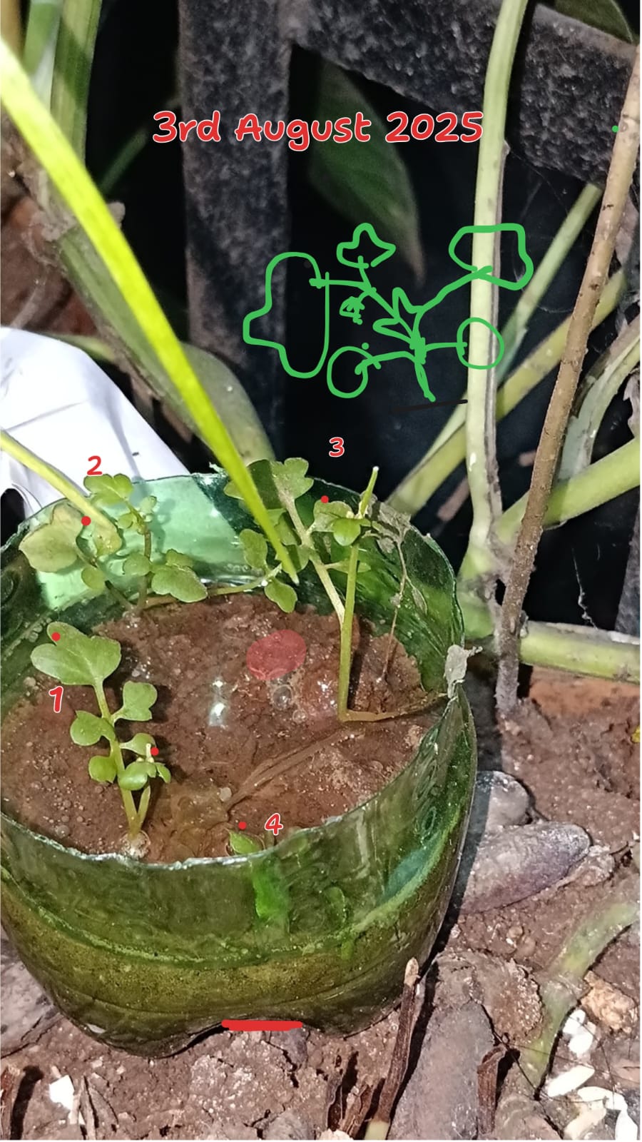 The visual whiteboard and photographic evidence shared during the meeting helped in recognizing growth stages, leaf morphology, and the environmental setup using recycled containers.
