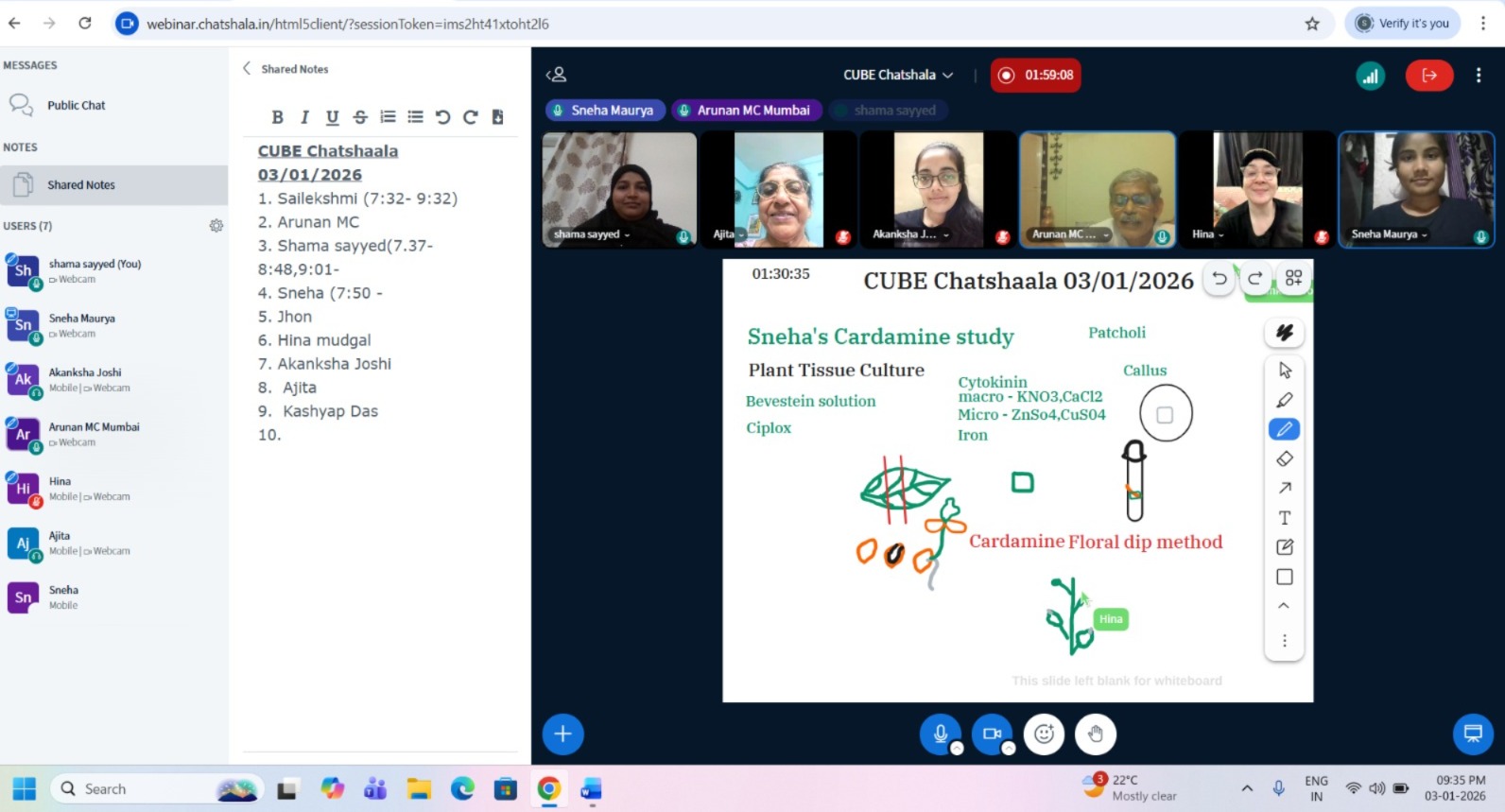 The ChatShaala session on 03/01/2026 unfolded as a rich, interdisciplinary dialogue that moved fluidly between observation, basic scientific reasoning, and applied biological techniques. The discussions were anchored strongly to the whiteboard explorations, allowing ideas to evolve visibly and collaboratively.