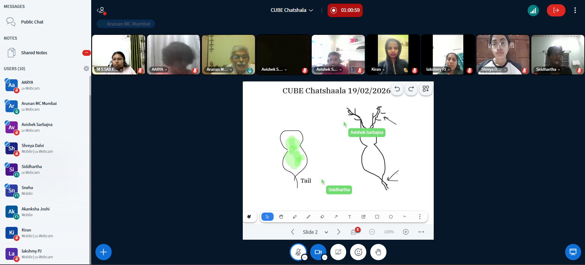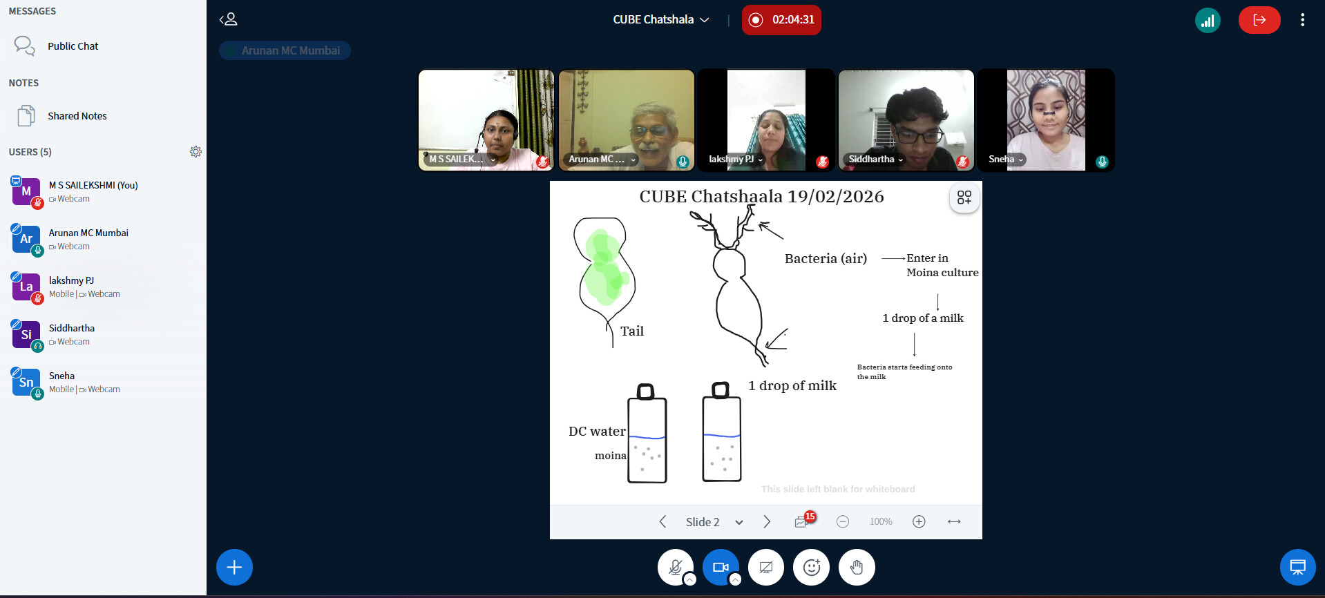 The CUBE ChatShaala session on 19 February 2026 centered around the identification and culture of Moina macrocopa and its ecological interactions. Students from CHM College, Ulhasnagar, collected pond water samples and initially believed the organism to be Daphnia. However, Kajal Kumari from ANDC College, Delhi, challenged this identification, suggesting it was Moina. The sample was later verified in Subhojit Sir’s lab with the assistance of Jyothi and Kritika, confirming it as the Moina macrocopa JSK1 strain.