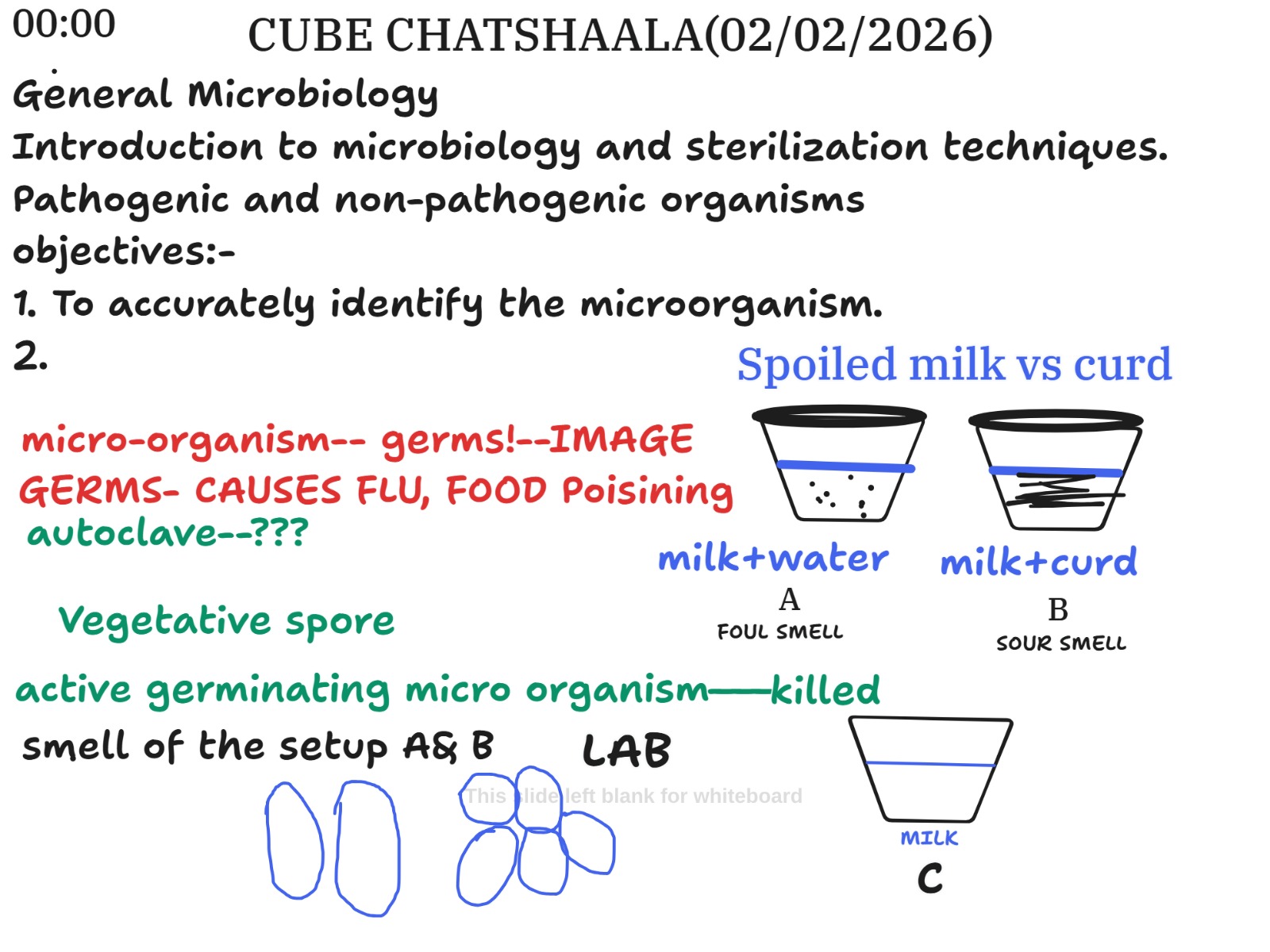The CUBE ChatShaala session held on February 2, 2026, offered a rich exploration of foundational microbiology and biochemistry concepts through interactive discussion and visual aids. The session began with an introduction to microorganisms, emphasizing the distinction between pathogenic and non-pathogenic types. Cubists investigated how microbes affect everyday phenomena such as food spoilage and fermentation, using milk-based setups to demonstrate microbial activity. Setup A (milk + water) emitted a foul smell, indicating spoilage, while Setup B (milk + curd) produced a sour smell, characteristic of fermentation. Setup C (plain milk) served as a control.
