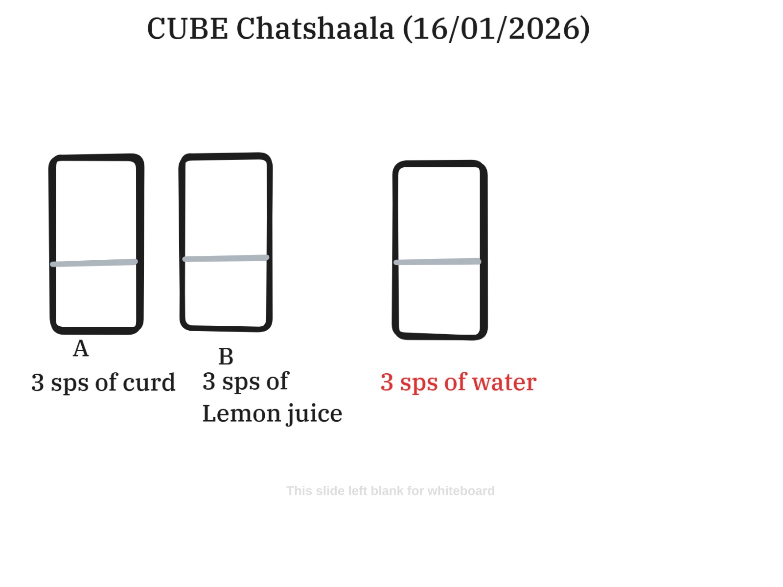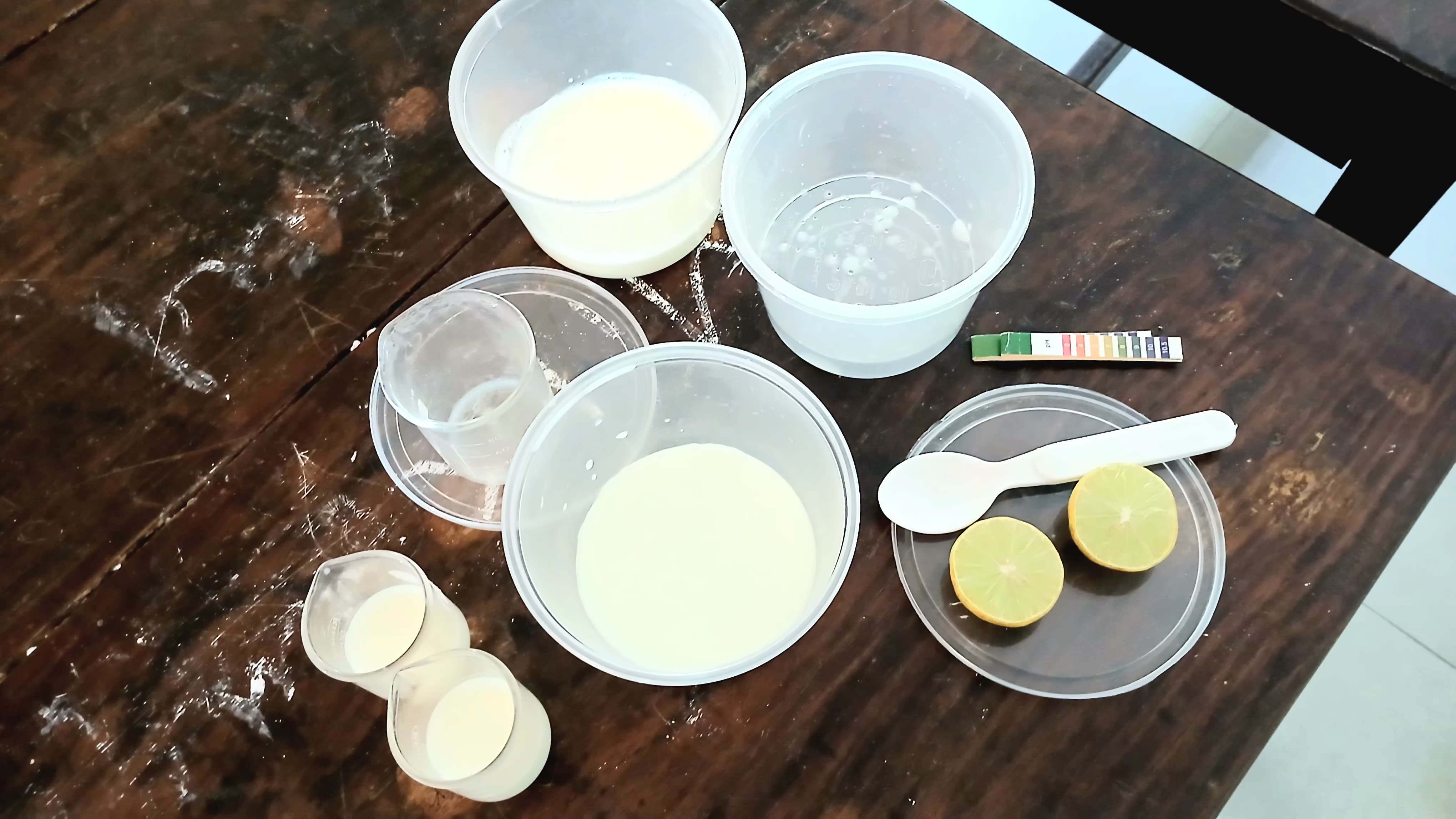 - Beaker A: Milk with 3 spoonfuls of starter curd (for biological control).
