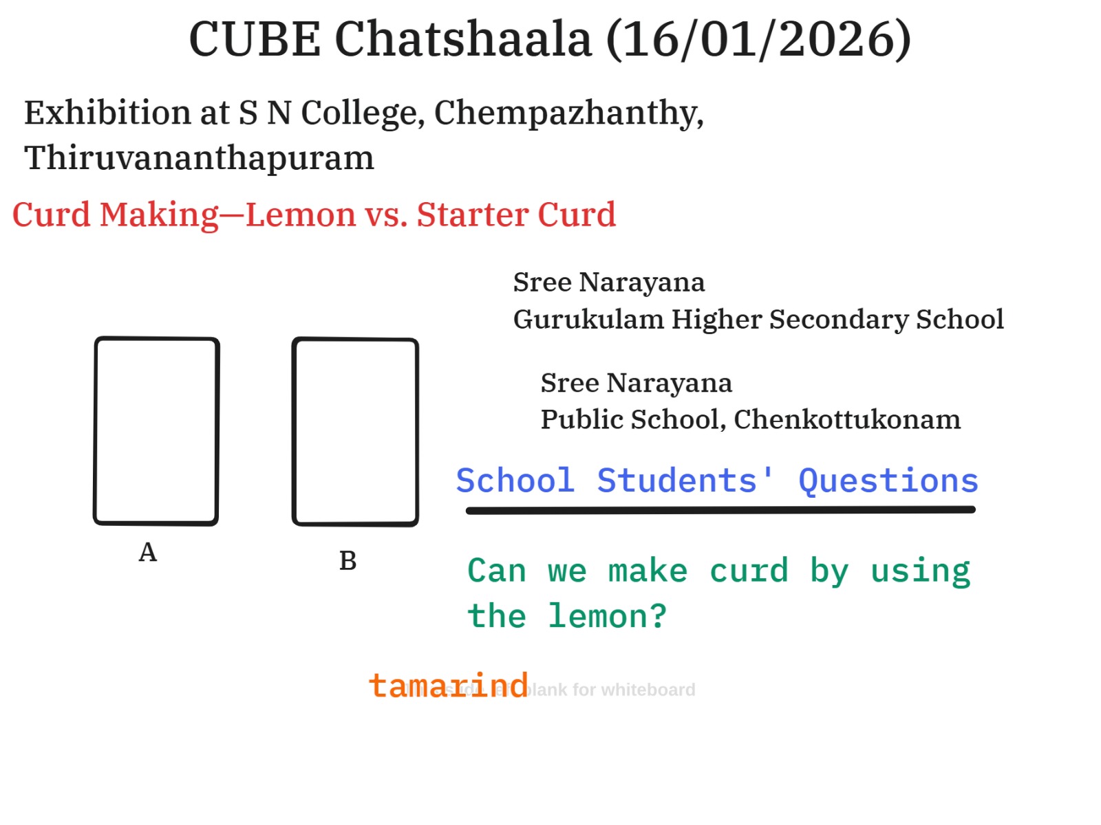 The session began with Sailekshmi’s CUBE homelab experiment at the exhibition at S N College, Chempazhanthy, Thiruvananthapuram, which was a lively exploration of biological and chemical processes, specifically the transformation of milk into curd. The discussion was sparked by a fundamental question posed by students from Sree Narayana Gurukulam Higher Secondary School and Sree Narayana Public School, Chenkottukonam: “Can we make curd by using lemon?” Most of the school students mention using tamarind to make curd.