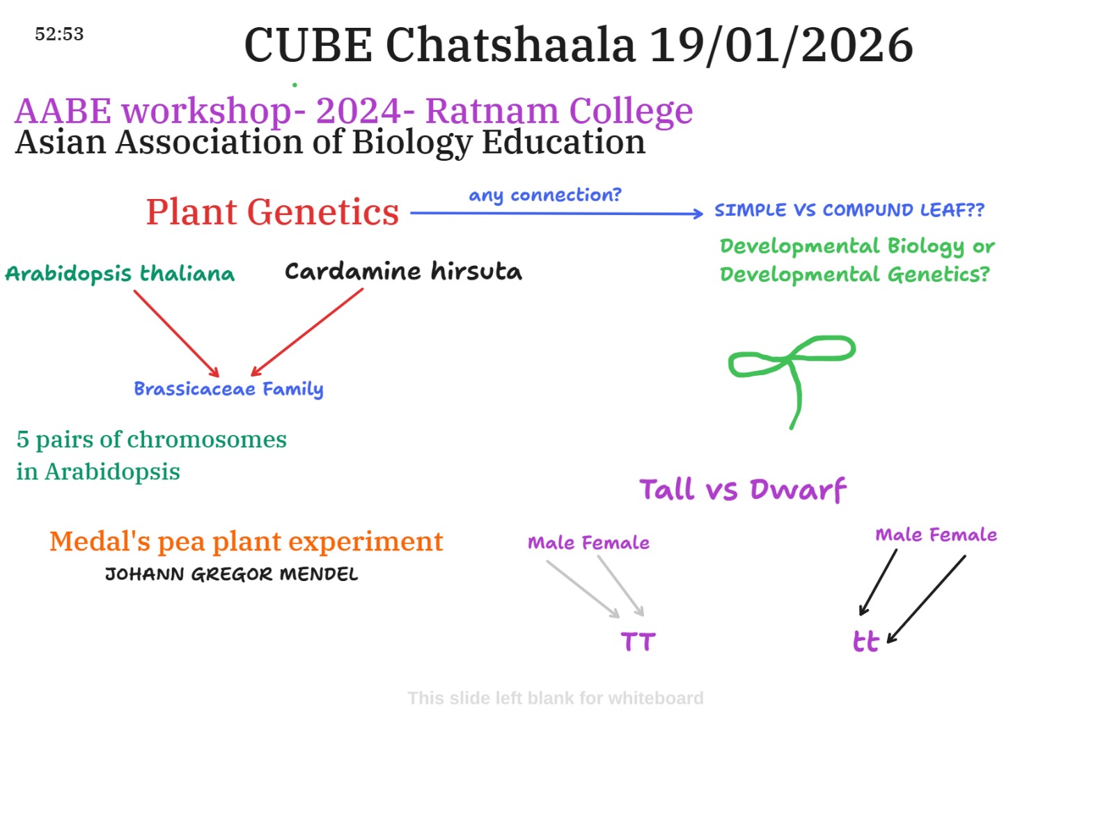 The discussion then pivoted to Plant Genetics and Developmental Biology. We compared Arabidopsis thaliana and Cardamine hirsuta (both of the Brassicaceae family) to understand the genetic basis of leaf morphology (simple vs. compound). The session revisited Mendelian principles, specifically the inheritance of “Tall” and “Dwarf” traits, emphasizing how chromosomal arrangement dictates phenotype.