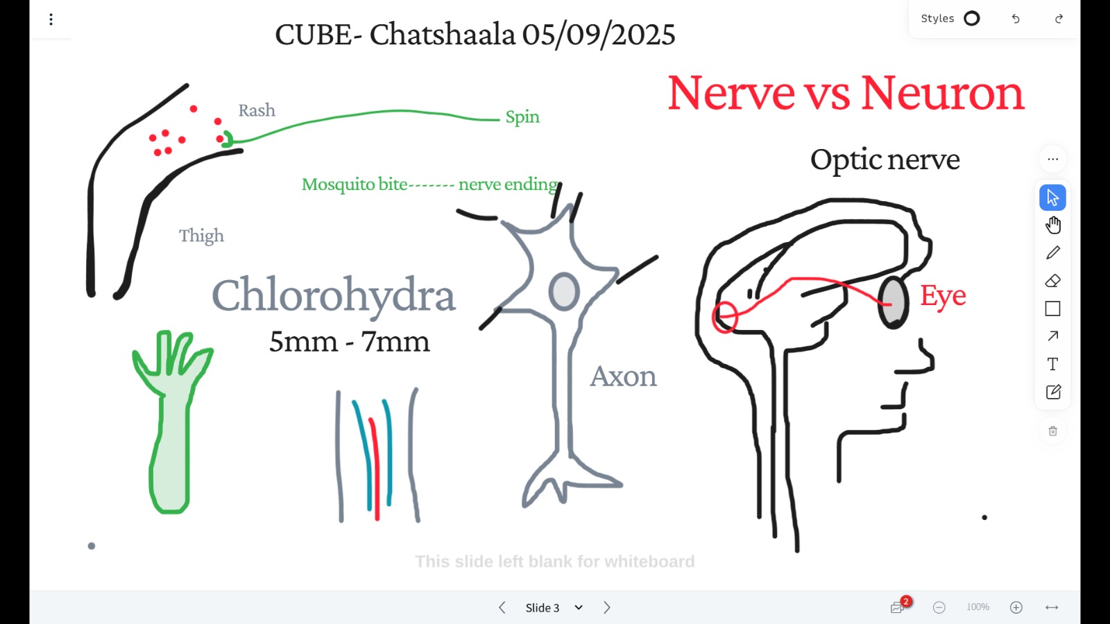 Illustrations helped clarify the difference between nerves vs. neurons, using examples such as the optic nerve and its role in vision.