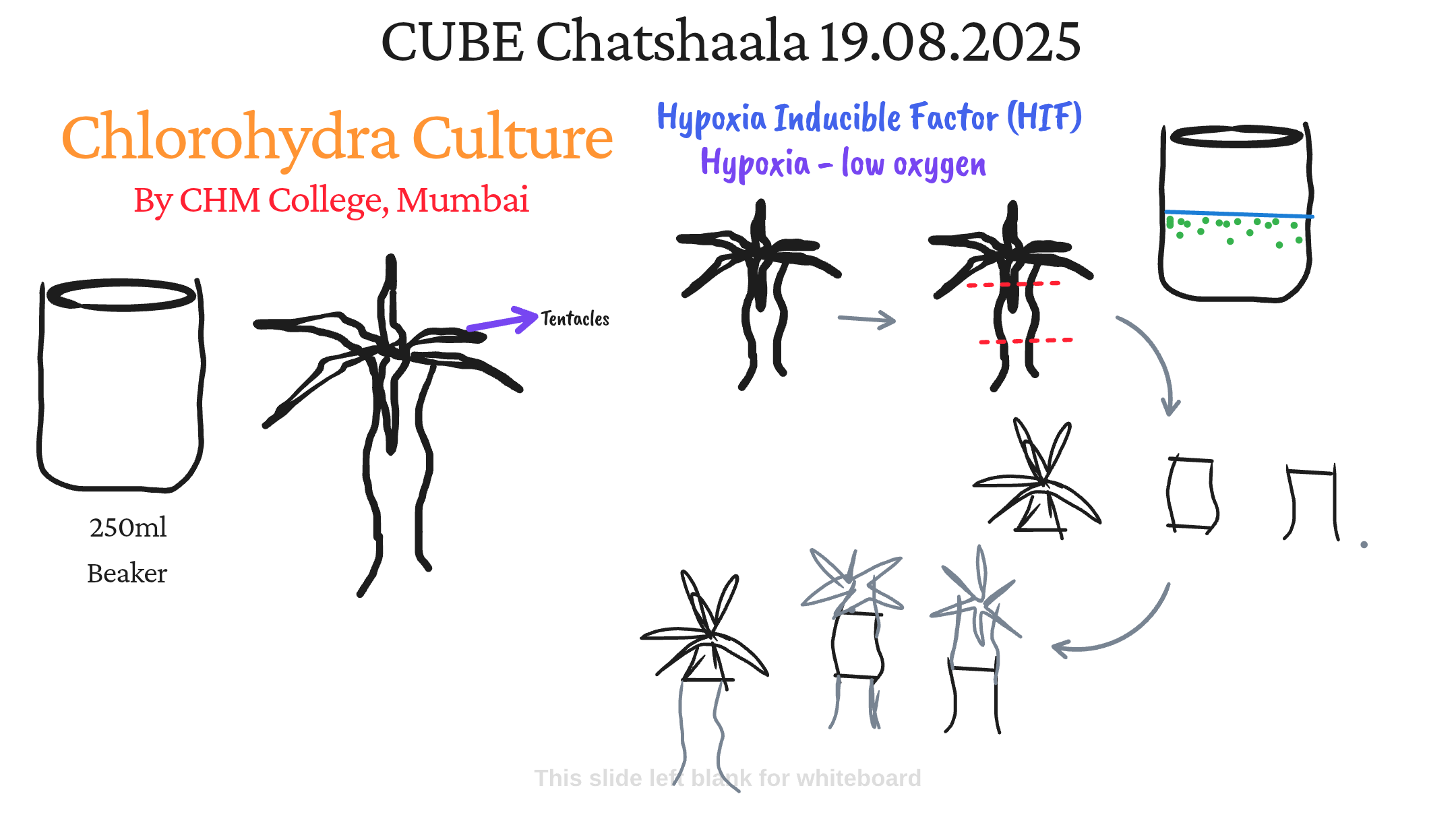 Students presented ongoing culture experiments of Chlorohydra in 250 ml beakers.
