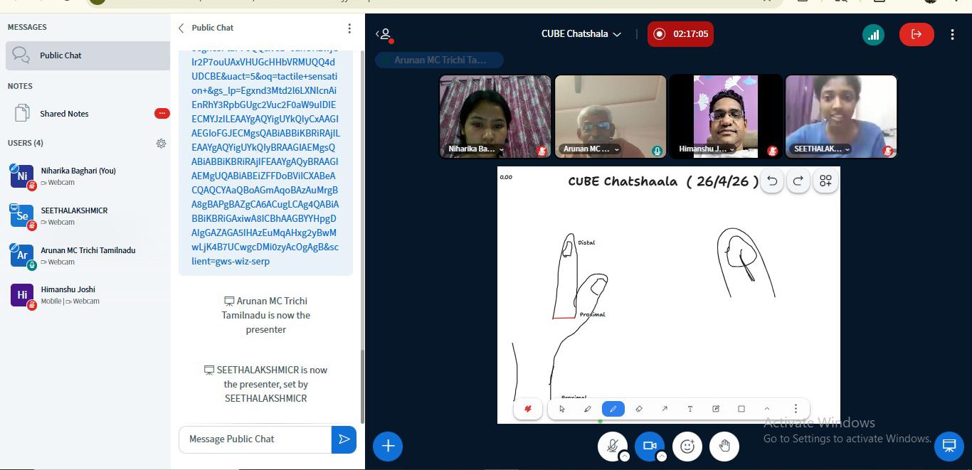 Today’s CUBE ChatShaala session centred on something deceptively simple — the fingernail. What started as an observation about a red streak visible beneath a nail quickly opened into a wide-ranging conversation about nail anatomy, the sensory biology of the fingertip, and what it really means to “observe” in science.
